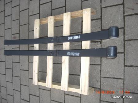 Zur Auflastung eines IVECO 35C...L Scudrc, BJ. 2012 mit Zw.-Bereifung von 3,5 auf 4,0 t geeignet. Parabel/Blattfedern sind am Fahrzeug 5990 km gelaufen,IVECO- Bauteile Nr. 504121167. Neupreis ca.350-400Euro pro Stück. Teile sind nahezu Neuwertig (Ein u. Ausbauspuren sind vorhanden) , siehe Fotos.
