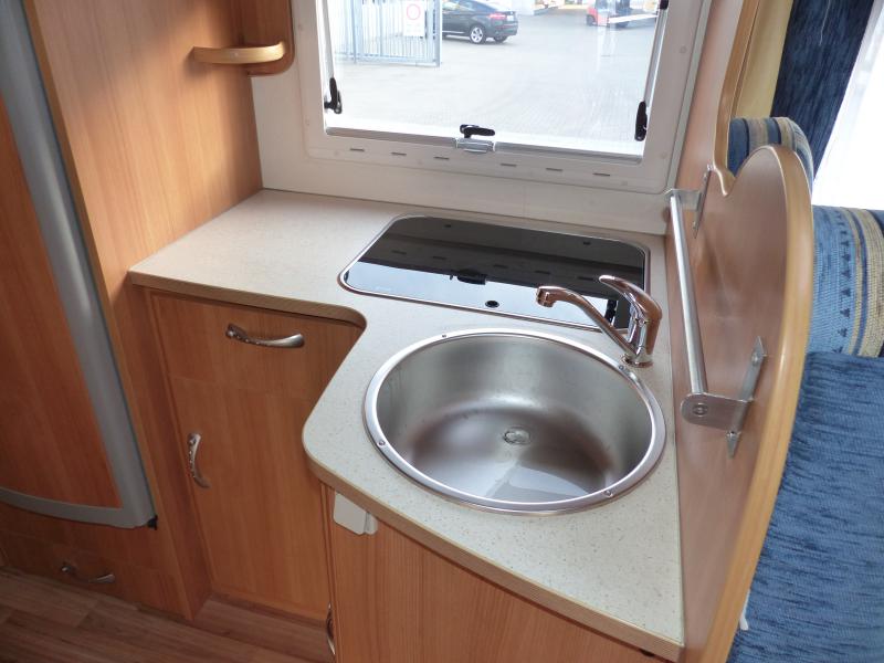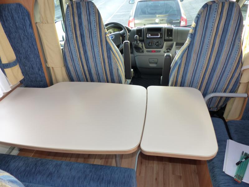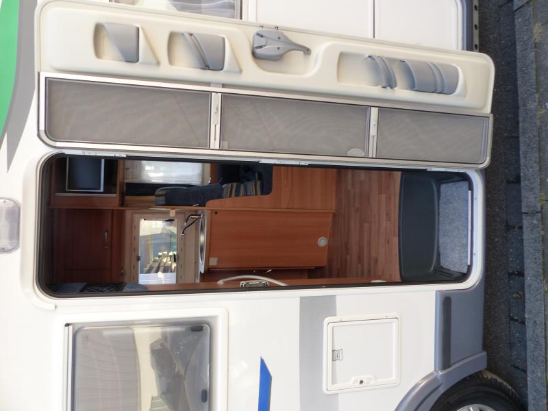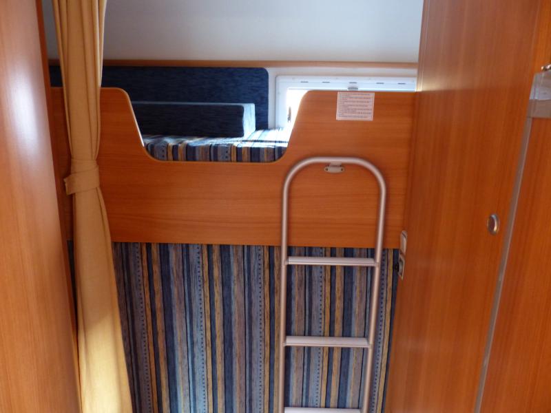 Innenausstattung •Etagenbett •Festbett •Klimatisierung (Klimaanlage) •Seitensitzgruppe •Separate Dusche •Servolenkung •Auto-Satanlage mit TV •Zentralverriegelung •Rückfahrkamera mit Farbmonitor 7 Zoll •großer Kühlschrank mit Gefrierfach •großes elektr. Panoramadach •Ventilator im Alkovendach ( genial im Sommer)