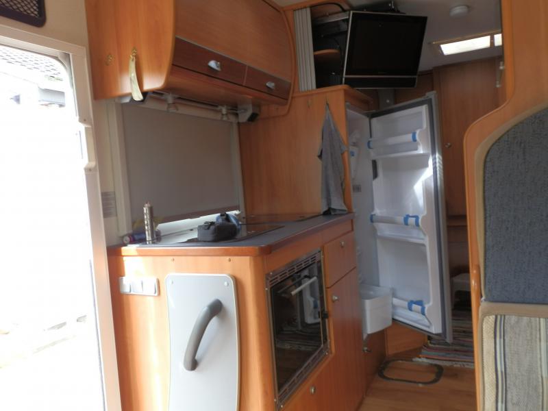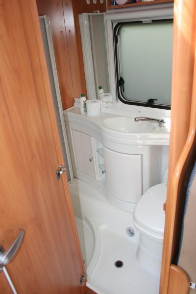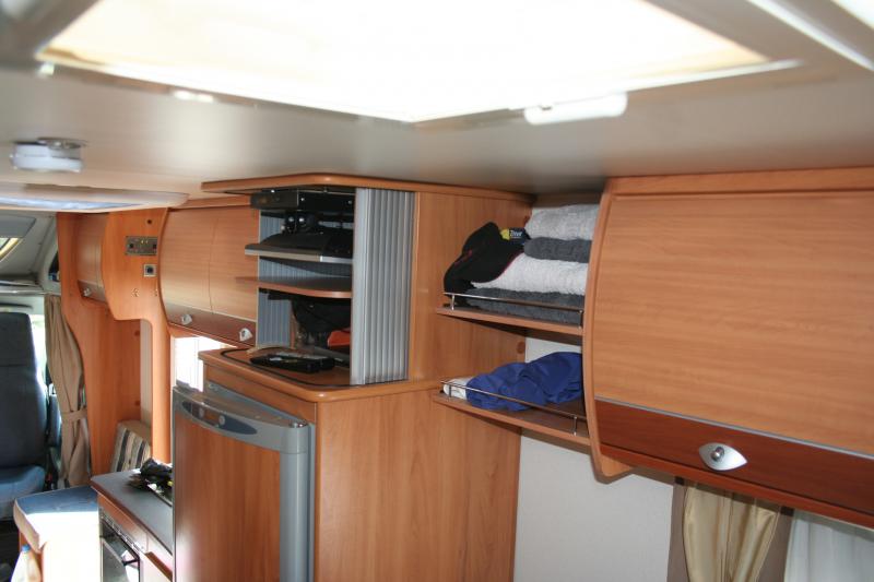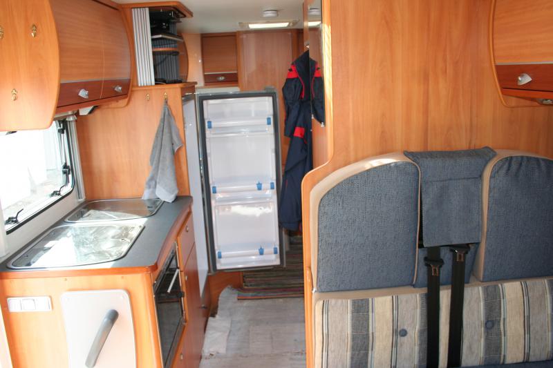 Innenausstattung: Festbetten (Einzel) Klimatisierung (Klimaanlage) Mittelsitzgruppe Navigationssystem Separate Dusche Servolenkung Tempomat WC Zentralverriegelung 3-flam. Gasherd Backofen mit Grill große Kühlgefrierkombi CD-Radio Navigation Fliegengitter an Aufbautür