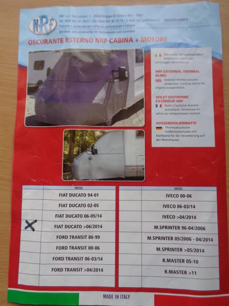 Thermohaube außen, 2-teilig, gekauft für Fiat Ducato 2014, NEU und unbenutzt