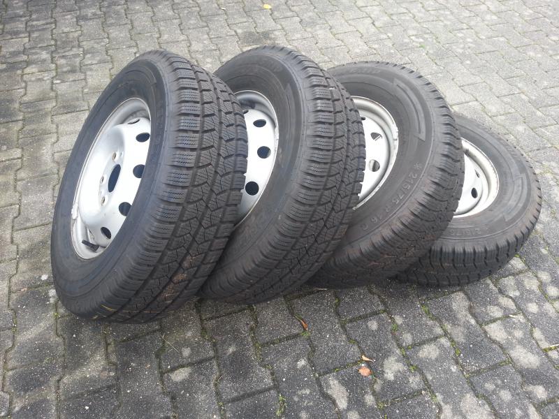 | Beschreibung: | Biete 4 Kompletträder mit Semperit Winterreifen 215/75 R16C 113/111 R auf Stahlfelge 6 J x 16 H2 ET68. Die Räder sind gebraucht. Profiltiefe 2 x 11 mm, 2 x 12 mm. Die Räder waren beim Kauf dabei und werden wegen Saisonkennzeichen nicht benötigt. |