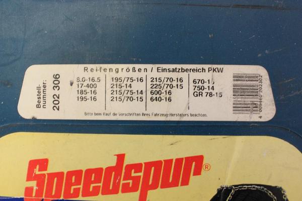 Die Ottinger Speedspur #202306 passt lt Etikett für folgende Reifengrößen: 215 x 14 7.50 x 14 215/75 x 14 6.70 x 15 215/70 x 15 Transporter 225/ 70 x 15 6.00 x 16 6.40 x 16 8.00 x 16.5 185 x 16 195 x 16 195/75 x 16 215/70 x 16