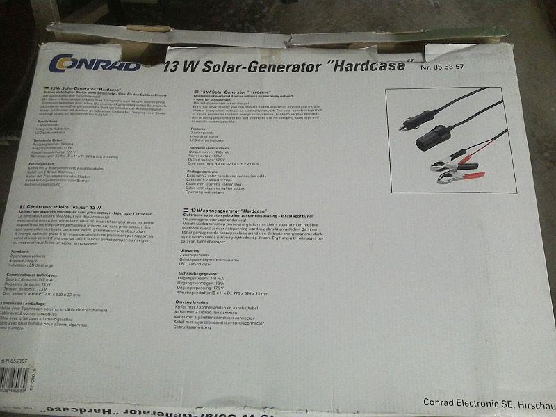 Biete einen 13 Watt Solarkoffer als Hardcase von der Firma Conrad zum Verkauf an, weitere Punkte siehe Bilder.