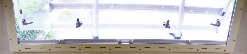 Komplett mit Innenrahmen, Verdunkelung und Moskitonetz. Das Fenster ist 25 Jahre alt und weist dementsprechend (kleinere) Gebrauchsspuren auf. Kleine Kratzer, die aber rauspoliert werden könnten. 2008 habe ich die Verdunkelung und das Moskitonetz erneuert. Das Fenster hatn keine Defekte, jedoch haben sich der Außen- und Innenrahmen im Laufe der Jahre verzogen, weshalb das Rollo bei Wärme beim Auf- und Zuziehen etwas klemmt.