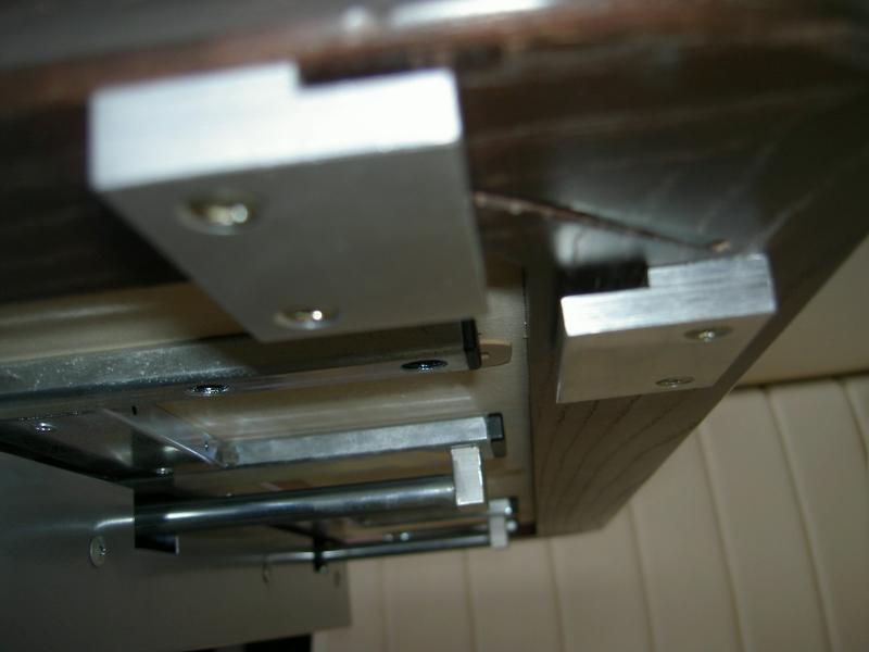 Tisch wird einfach mittels Schienen eingesteckt und verriegelt. Siehe Bilder.