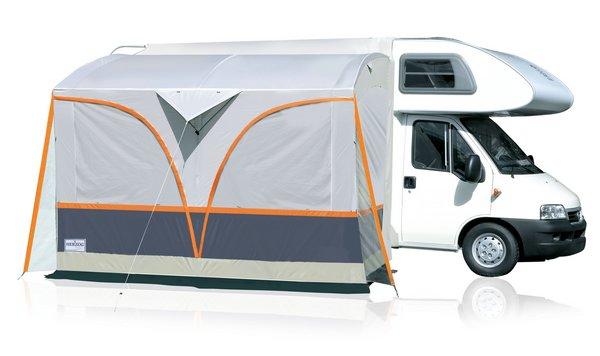 Das Design schafft einen luftigen Innenraum bei kompakten Außenmaßen. Große Türen und Fenster sorgen für ein angenehmes Raumklima und das Alugestänge für leichten Aufbau.