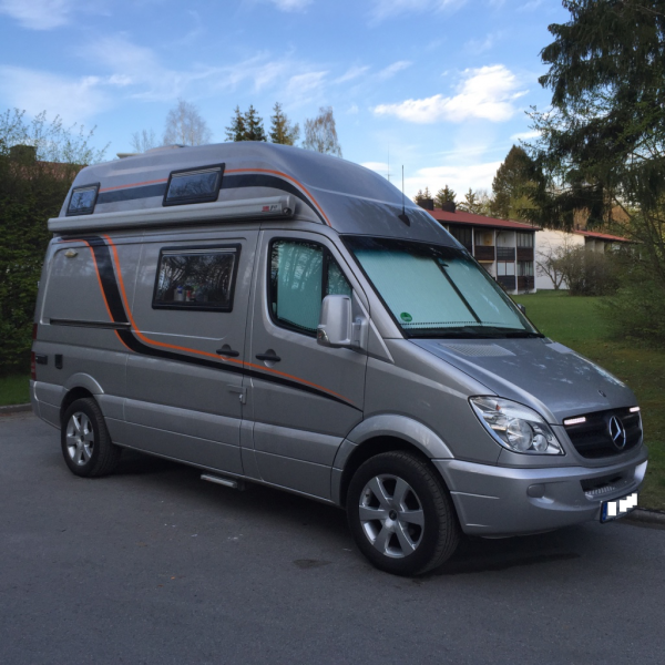 Hochdach mit Isolierung und Innenverkleidung Komplettisolierung und Verkleidung des Fahrzeuges hochwertiger Möbelbau in Postformingbauweise aus 15 mm Pappelsperrholz beschichtet S4 Rahmenfenster in der Sitzgruppe, im Toilettenraum, links und rechts im Hochdach sowie in der Schiebetür Winkelküche mit viel Stauraum, 80 l Kompressorkühlschrank Kocher-Spülen Kombination mit 2-flamm Kocher Abgeteilter beheizter Doppelboden bis hinter den Fahrersitz Druckwasseranlage, Frischwassertank 130 l, frostfrei eingebaut Abwassertank 130 l unterflur Toilettenraum mit Einbautoilette Waschbecken mit Unterschrank Garderobenschrank mit Wäschefächern separate Dusche mit Brause und Duschtür Sideboardschrankzeile rechts sowie Oberschränke rechts und links Gastankflasche 11 kg mit DUO- Control Regleranlage Heizung Truma Combi 4 mit 10 l Boiler Elektroanlage mit 230 V Einspeisung, AGM -Bordbatterie 160 Ah Ladegerät 22 A, LED Lampen in den Funktionsbereichen Energiezentrale mit Sicherungsautomaten und Tanksensoren Anzeigepanel für Wasser und Batterien, Uhrzeit und Thermometer Halbdinette umbaubar zur Liegefläche von 180 cm x 86 cm Dachbett mit Matratzensystem Froli 1950 mm x 1540 mm Thermomatten im Fahrerhaus, Außendekor Bresler Mobile inkl. Vorverkabelung Aufbauhersteller, drehbare Sitze, abklappbarer Handbremshebel, elektr. Außenspiegel & Fensterheber Metallic-Lackierung Automatik Radiovorrüstung mit 2 Lautsprecher, Antenne Radio doppel DIN inkl. Lautsprecher ( Bluetooth, CD, USB ) Lautsprecher im Wohnraum Ø 100 mm, 2 Stück Airbag Beifahrer Klimaanlage geregelt, Warmluft Zusatzheizung elektr. (notwendig) Tempomat Reserveradhalter unter Rahmen Reserverad Anhängerkupplung 2000kg Lackierung Hochdach in Wagenfarbe Panoramafenster Midi Heki 70 x 50 cm mit Spoiler in Wagenfarbe lackiert Markise Fiamma F45 Titanium Silber 3,5m Fahrradträger Sprinter/ Crafter für die Türscharniere, 2 Räder Sat-Anlage Oyster Caro Vision, automatisch LED - TV schwenkbar - im Innenraum sowie „outdoor“ fernsehen DVB-T/S Receiver, DVB-T Antenne mit Auszug 18" ORC - Hochlastalufelgen mit Sommerbereifung 255/55, montiert Rückfahrkamera RV 564 LCD-Monitor 5", mit Rückspiegelfunktion elektr. Einstiegsstufe 400 mm Remifront Fahrerhausverdunkelung 3-teilig Heo-Safe Riegelschlösser für Fahrerhaustüren, abschließbar Zusatzschlösser Van Security für Schiebetür Duo Control CS (Gasumschaltanlage) Moskitonetz an der Schiebetür, 2-teilig Aussendusche warm/ kalt mit Brause Sonderpolsterung Estetika Life, rot Lackierung Stossfänger in Wagenfarbe Lackierung Rückspiegel in Wagenfarbe Sonnenabdeckung aussen für Führerhaus Frontscheibe inkl. Motorhaube Winter Thermohaube für das Fahrerhaus Schürze für die Abdeckung zwischen WoMo und Boden mit Magneten Fahrerhaus Teppich/Dämmung Isolierung Akustik und Thermo im Fußbereich mit Ausströhmunsöffnungen Marderschutz im Motorraum mit Hochvoltverdrahtung im Motorraum Tagfahrlicht LED Alarmanlage Scheckheftgepflegt - ausschließlich bei Mercedes Benz Werkstatt (leider nicht meine!)