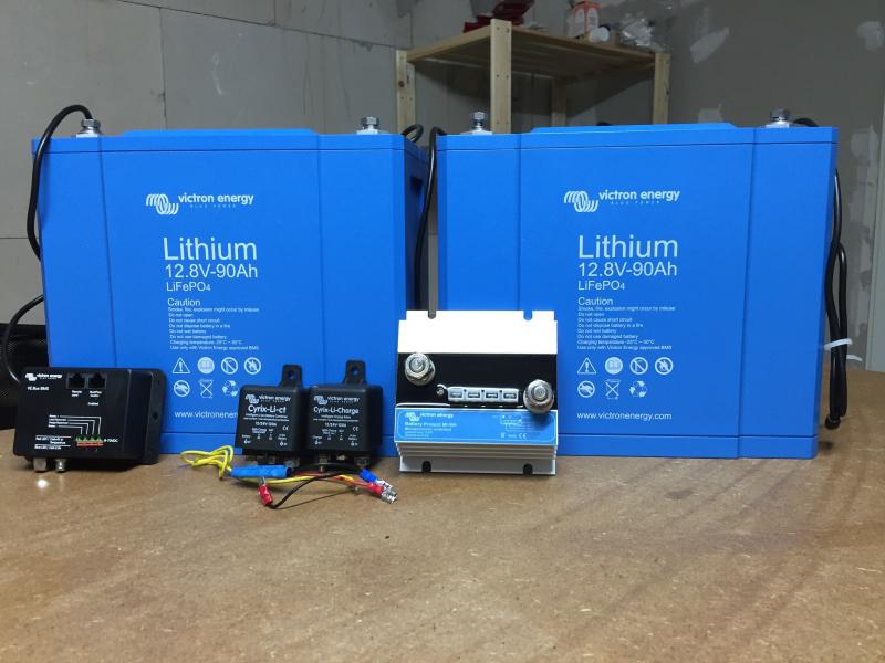 2x LiFePo4 12,8V/90Ah BMS Unterspannungsschutz BatteryProtect 12/24V-200A VE.Bus BMS Non inverting cable Cyrix Li-ct 120A Cyrix Li-Charge 120A |