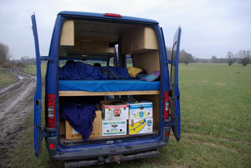 Dieser Ducato ist ein echtes Multitalent (für Reise, Flohmarkt + Transport : -) Bei Bedarf können auch neue Alurampenschienen miterworben werden. Bett kann entfernt werden so daß ein großer Laderaum zur Verfügung steht. Bett lässt sich nicht zu einer Sitzgruppe umbauen. Diverse Schränke, Lampen und Stromanschlüsse innen. Zweitbatterie, kein eingebautes Gas => keine Gasprüfung : -) Vorzelt + ein neues Porta-Potti gibt es kostenlos dazu, ebenso silberne Klimamatten für die Thermo-Isolierung der Fenster.