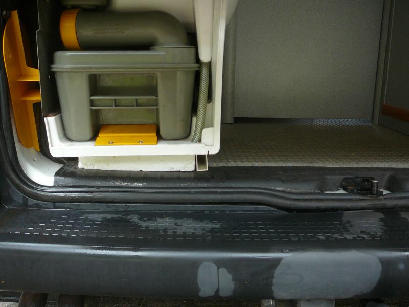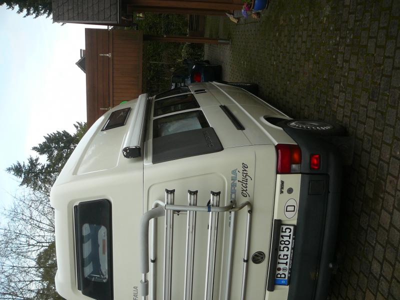 Alle Ausrüstungsteile funktionieren: Klima, Standheizung, Wasserpumpen, Kühlbox, Toilette, Markise, Fahrradträger. Gewechselt wurde für die Grüne Plakette auch der Kat und ein Teil des Auspuff-Rohres.