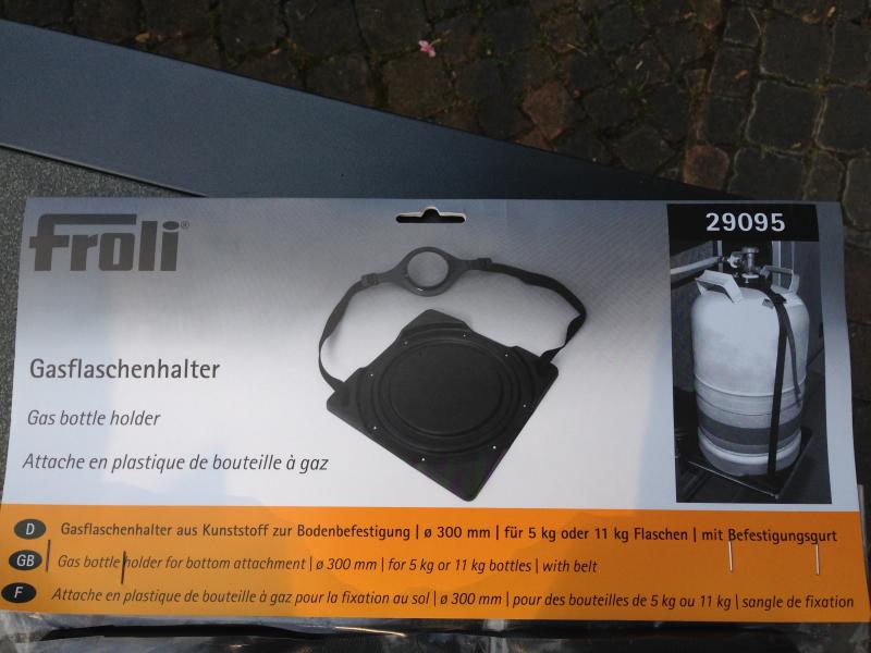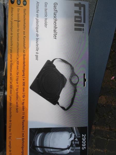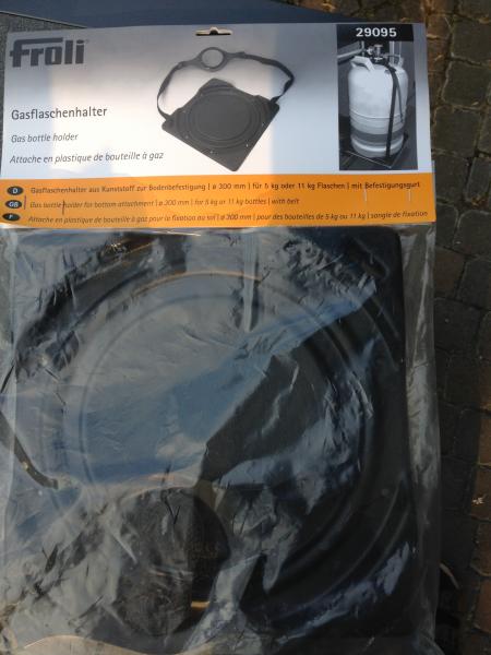 | Beschreibung: | Verkaufe hier einen neuen Froli Gasflaschenhalter aus Kunststoff. Für nur 10 €. Die Gasflasche wird auf die Fixierung für 5 oder 11 kg Flaschen gestellt und mit einem Befestigungsriemen am Flaschenhals befestigt. Eine zusätzliche Befestigung an der Seite ist nicht nötig! Habe es nur einmal ausgepackt und dann festgestellt das er bei mir nicht passt. Versandkosten betragen 5€ |