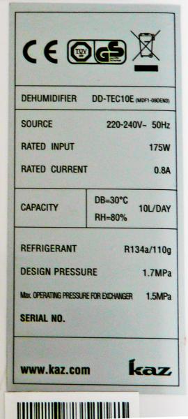 Tragbarer Luft-Entfeuchter, 230V, bis 10 Liter/Tag