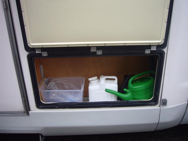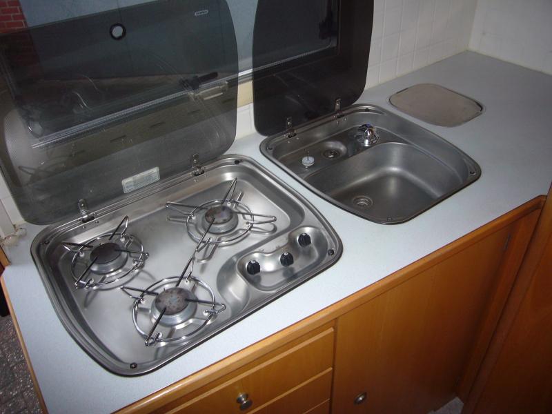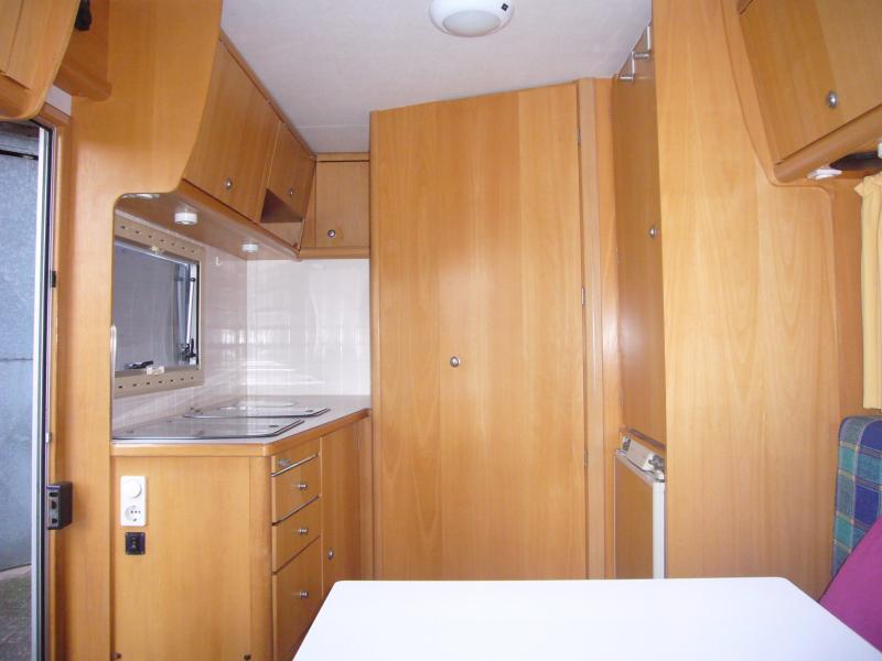 TÜV/Gasprüfung: 4/2017 Der Aufbau besteht komplett (auch Boden!) aus dicken Sandwichplatten mit PU-Schaum-Dämmung (kein wasserziehendes Styropor!) und GFK-Außenschicht. Er hat einen durchgehenden sehr geräumigen beheizten doppelten Boden, in den vom Heck her Surfbretter geschoben werden können!