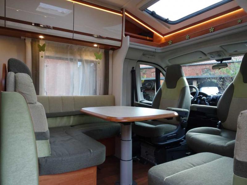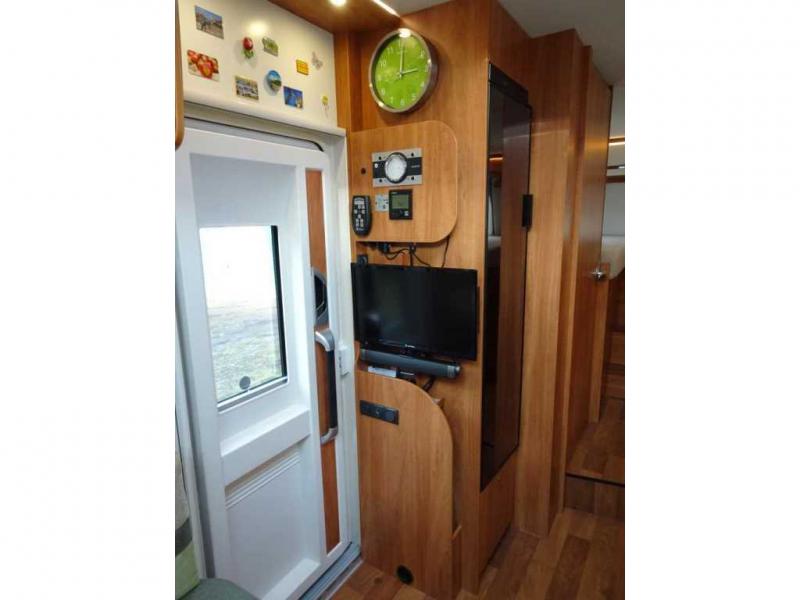 - Tempomat - Fahrer und Beifahrer Airbag - Elektrische und beheizte Aussenspiegel - Einstiegstufe elektrisch - Indirekte Beleuchtung - LED-Lichtpaket (komplette Innenbeleuchtung in LED) - Vorzeltleuchte 12V - Kühl- / Gefrierkombination (142/15 Liter) - XXL Aufbautüre (70cm Breite) mit Fenster und Zentralverriegelung (inkl. Fahrerhaustüren) - Thule Omnistor Markise 4.500 mm - L-Sitzgruppe mit freistehendem Tisch und Bettumbau Sitzgruppe - Fernseher Caratec Vision CAV226DSW 55 cm (22“) Weitwinkel LED TV - Caratec Audio CAS100 Soundbar - Kennwood Moniceiver DDX4015BT mit Bluetooth Freisprecheinrichtung - Jehnert-Soundpaket |