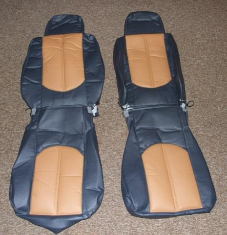 verkaufe 2 neue maßgeschneierte Sitzbezüge aus Ledernachbildung grau/ beige.
