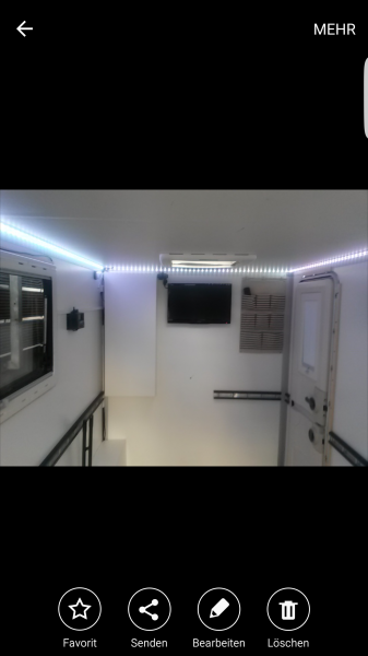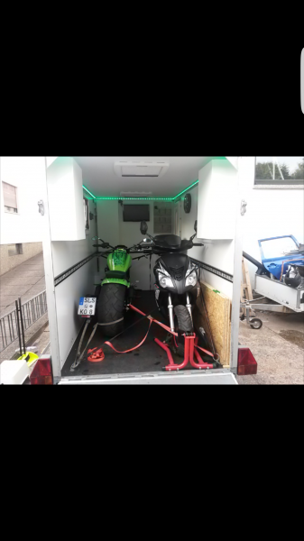 Der Anhänger hat eine 100 Watt Solar anlage mit Regler und 2 X 80ah Batterien. Led Lichtleiste um die decke rum mit allen Farben und Fernbedienung.