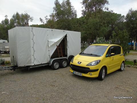| Beschreibung: | Aus gesundheitlichen Gründen muss ich mich vom Hobby trennen. Deshalb biete ich meinen Trailer zum Verkauf an. Das Wohnmobil wird momentan gereinigt und das Angebot mit Bildern folgt in den nächsten Tagen. Eine Serie weiterer Bilder kann per Mail geschickt werden. Anhänger Humbauer HAK 200 / 250 Erstzulassung in Deutschland 2004 ? Seit 2014 in Ungarn zugelassen TÜV in Ungarn bis 04 / 18 Eine Wiederzulassung in Deutschland ist Dank EU kein Problem. Leergewicht lt. Papiere 600 Kg. Ich denke durch die nachträglichen Einbauten wie Holzdecke (damit die Plane bei Regen nicht durchhängen kann), durchgehender Boden mit wohnlichem Grasteppich und den Küchenablagen mit Oberschrank, ist das Gewicht etwas höher. Das zul. Ges.Gew. Ist 2500 Kg. Die Innenmaße sind: Breite 1,94 m. Länge 4,20 m plus 53 cm. In der Schräge. Höhe bis Spriegel: 2,0 m. Die Reifen wurden vor ca. 4000 Km erneuert (Produktion 38. Woche 14). Die Plane ist professionelle LKW Plane mit stabilen Verschlüssen. Zum Beladen des Hängers wird die komplette Plattform gekippt. Zum einfacheren Einfahren oder zum Beladen eines defekten Fahrzeuges ist eine elektrische Seilwinde eingebaut. Zum leichten rangieren des Hängers ist ein lenkbares elektrisches Bugrad angebaut. Dieses muss aber während der Fahrt abgebaut werden (eine Knebelschraube) Eine normale eingebaute Starterbatterie versorgt Bugrad und Seilwinde mit Strom. Die Batterie kann durch eingebautes Ladegerät geladen werden. Durch den nachträglich verbauten durchgehenden Boden kann der Anhänger auch als Küche, Wohnraum oder wie bei uns als Gruppenraum auf Campingplätzen genutzt werden. Deshalb ist zur Unterhaltung auch ein Autoradio mit Lautsprechern verbaut. Dieses kann auch an der Batterie angeschlossen werden. Eine Außenwand ist mit Berberteppichen behangen. Zur Beleuchtung sind marokkanische Lampen angebaut. Die elektrische Installation ist allerdings sehr laienhaft ausgeführt und entspricht keinesfalls der CEE Norm. Nach Beladen des Anhängers mit einem PKW kann der Hänger durch eine seitliche Tür verlassen werden. Im Boden sind stabile Bügel zum verzurren der Ladung angebracht. Auf der rechten Seite sind Holzleisten angeschraubt damit man beim Einfahren mit einem PKW nicht zu weit nach außen kommen kann. Über der Küchenarbeitsplatte ist ein großer Hängeschrank der alle Kochutensilien aufnehmen kann. Neben der Arbeitsplatte ist eine weitere Platte die bei Bedarf nach oben geklappt werden kann. Für den leichteren Einstieg ist am linken Kotflügel eine Leiter angebracht. Ein Ersatzrad ist außen angebracht. |