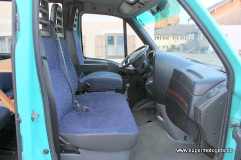 | Beschreibung: | Iveco Daily S2 Wir bieten hier unseren extra langen , extra hohen Doppelkabinen Motorrad Transporter an . Umgebaut und eingetragen als Wohnmobil. Im Laderaum hatten wir 2 Motorräder und 1 Roller immer dabei . in dem Regal waren sämtliche Zubehör und Ersatzteile sicher verstaut . Pavillon, Teppiche, Werkzeug,Kompressor, Aggregat, Ersatz- und Regenreifen....... alles hatte super Platz . Allerdings ist das alles hier nicht mit dabei ;) Vorne haben 5 Personen Platz zum mitfahren. Die hintere Sitzreihe hat einen Tisch zum aufklappen oder auch umbaubar zum Bett wenn der Tisch, mit ein paar Handgiffen; über die Sitze gebaut wird. Dahinter ist ein Klappbett , wo locker 2 Personen schlafen können. Wenn hochgeklappt ist eine Spüle und Kochgelegenheit . Rechts neben der Spüle war bei uns ein Kühlschrank aufgestellt, den wir aber ausgebaut haben( Eigenbedarf :) ) Also man kann sich hier noch selbst beim Ausbau verwirklichen. Licht und Steckdosen sind im Wohnbereich genauso wie im Laderaum reichlich verbaut. Bei den Sitzen zusätzlich noch Ladestationen für Handys.Über dem Fahrersitz ist ein riesen Stauraum. Das Fahrzeug ist super gewartet hat gerade noch eine neue Batterie bekommen. Eingetragen als SO. KFZ Wohnmobil über 2,8 t. Anhängerkupplung ; wir hatten oftmals einen Wohnwagen zusätzlich dabei. Rückfahrkamera ist auch eingebaut. Bei echtem Interesse einfach besichtigen. Gerne können auch noch zusätzliche Fotos per mail oder whatsapp geschickt werden. Der Gerät ist sofort fahrbereit, allerdings abgemeldet, Tüv noch bis April 2018 . |