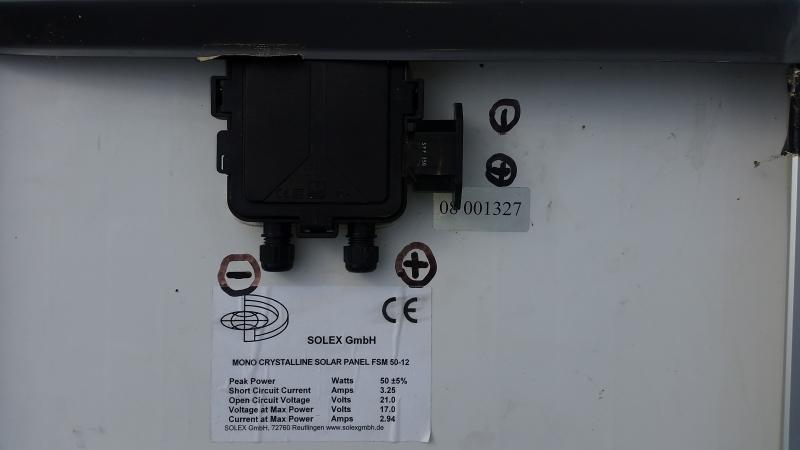 | Beschreibung: | Verkaufe ein Solarpanel 99x45 cm monocristal 50W Solex GmbH FSM 50-112 Solarplatte hatte ich zusätzlich zur Solaranlage für das Wohnmobil zum Aufstellen verwendet. Deshalb sind zwei Stützen verbaut. |