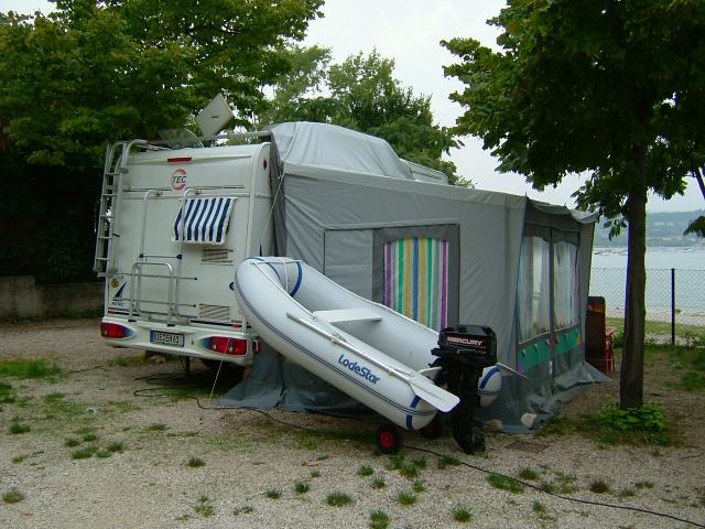 Wohnmobil kann bewegt werden ohne das man das Vortelt abbauen muß, es muß nur die Dachbefestigung gelöst werden.