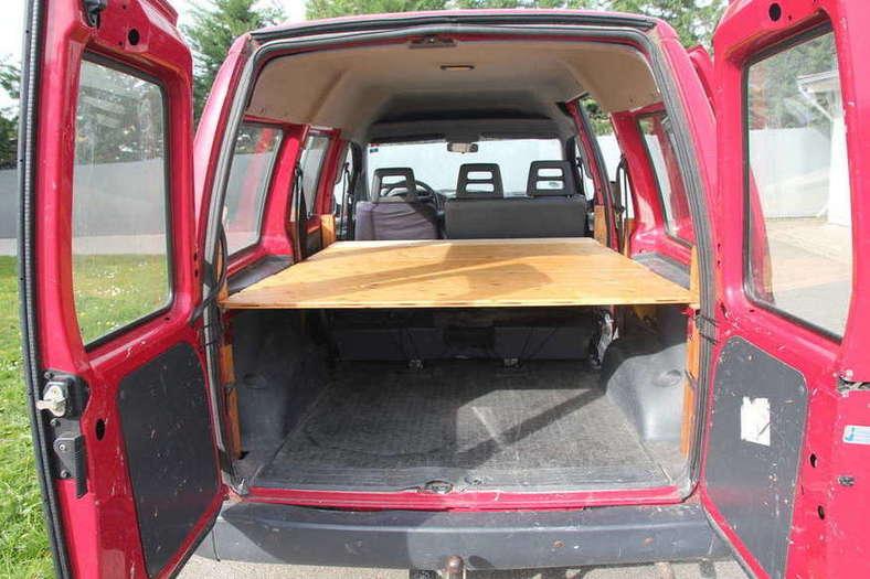 Das Bett kann auf 5 unterschiedlichen Höhen eingebaut werden, so dass man entweder mit oder ohne Rückbank in Urlaub fahren kann. Ohne Bank hat man unter dem Bett mehr Stauraum und kann sie tiefer einsetzen. Außerdem kann man es auch teilen und die Bretter nur über, oder nur hinter der Bank befestigen.