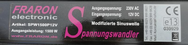 Inverter Fraron 1500 W , mod. Sinus , funktionsfähig, wurde bei mir für Dachklimaanlage eingesetzt.