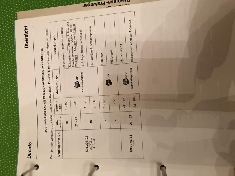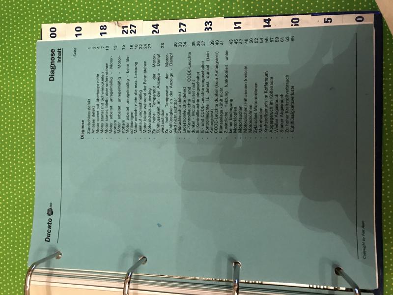 Habe auch noch eine Rep.-Anleitung Ducato 230 mit dem 2800 Dieselmotor, mit Anleitungen zur Fehlersuche, werde noch Bilder nachladen ! |