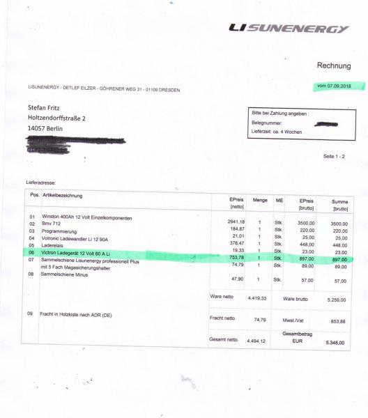 | Beschreibung: | Hallo, ich habe versehentlich ein falsches Ladegerät für meine Lithiumbatterie gekauft und verkaufe es hiermit wieder von Privat. Originalverpackt, nie angeschlossen, nur einmal den Karton geöffnet. Keine Kratzer oder Beschädigungen. Mit Original Rechnung und Hersteller Garantie. Gekauft im August 2018. Mit Originalkarton und Bedienungsanleitung und Temperaturfühler im Lieferumfang