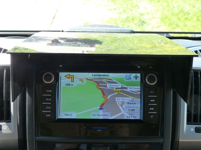 | Beschreibung: | Da sich das Navi (Zenec) in unserem Wohnmobil auf Ducatobasis bei Lichteinfall von der Seite sehr schlecht ablesen lässt, habe ich einen Blendschutz entworfen, der mit der Klemme oberhalb des Navi befestigt wird. Die Wangen passen in die Schlitze rechts bzw. links vom Navi. Das Teil ist passgenau aus schwarzem Hartplastik (3mm) gefertigt. Die Firma, die mir das Teil gebaut hat, hat den Sichtschutz gleich dreimal angefertigt, so dass ich hier zwei zum Verkauf anbiete. Preis je Blendschutz 25 € |
