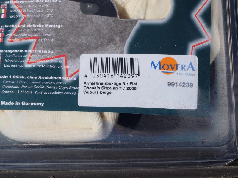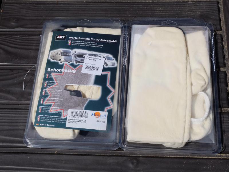 | Beschreibung: | Zum Verkauf kommen 2x2 unbenutzte und original verpackte Armlehnenschonbezüge von "ART" im Vertrieb von Movera. Die Bezüge sind aus 100% Baumwoll-Velours (Farbe beige) maschinenwaschbar bei 40°C. Passend für Aguti Sitze, dem Standartgestühl unserer Fahrzeuge von Sevel (Fiat/Citroen/Peugot).