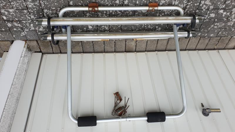 Träger für zwei Fahräder zur Befestigung an Wohnwagendeichsel.