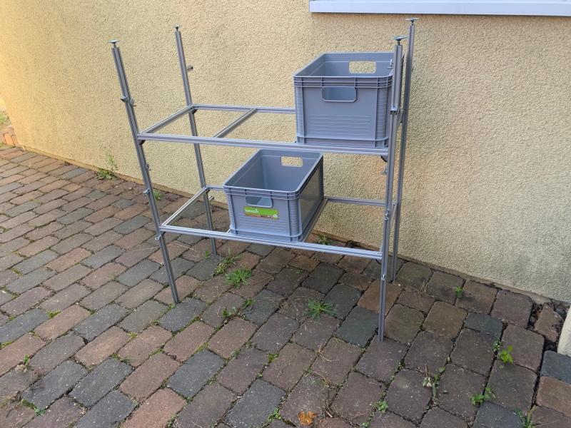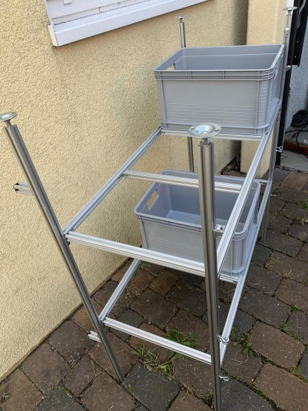 Ich biete ein neuwertiges Alu-Regalsystem für Heckgaragen im Wohnmobil an.