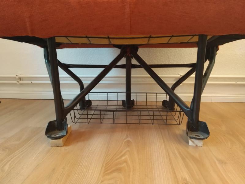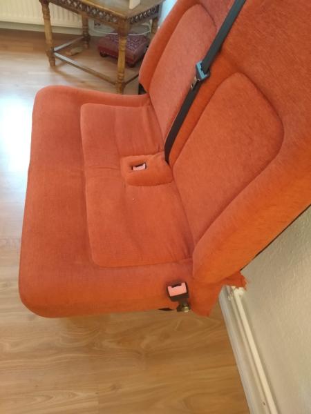 Die Bank ist top in Schuss, verfügt über einen Gurt sowie zwei Gurtschlößer. Der Bezug hat der Vorbesitzer neu anfertigen lassen.