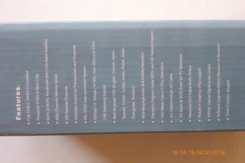 Der Verkäufer sagte (7/2018), das der Receiver alles kann, was momentan technisch machbar sei. Er hat DVB, DiSEqc, MPEG, Laserausgang uvm. (siehe Bilder). Mir sagen diese Begriffe nichts. Jedenfalls funktioniert er (wir haben damals nach über 1 Std. den Satelliten mit der Antenne gefunden, jedoch war der Motorantrieb der Antenne kaputt - daher wurde er nicht eingebaut bzw. Antenne abgebaut).