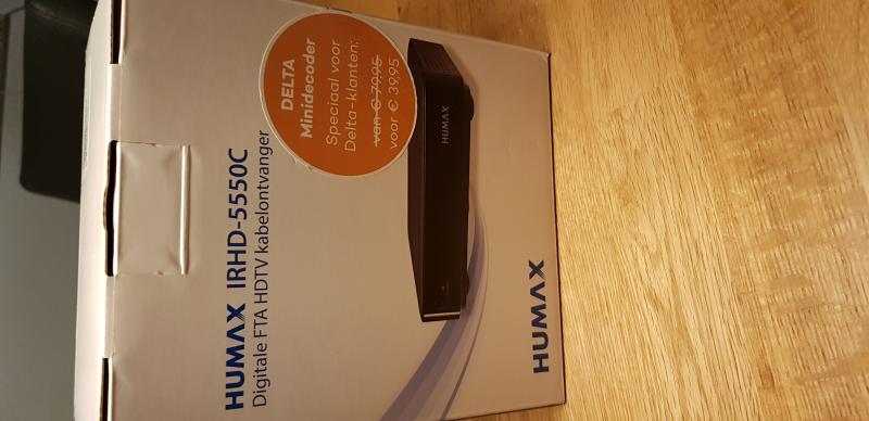 1x Humax / Receiver / Mini-Decorder, Typ: Typ: IRHD-5550C, Farbe: schwarz. Fernbedienung inklusive: ja. Empfang: unverschlüsselte HD- und SD-Kanäle von Kabelunternehmen und Glasfaseranbietern mit DVB-C. Anzeige: HDTV. Elektronischer Programmführer: Ja. Anschlüsse: HDMI, USB, SPDIF, Scart. Abmessungen: 13,3 x 16 x 3,4 cm. Gewicht: 0,7 kg NEU & OVP |