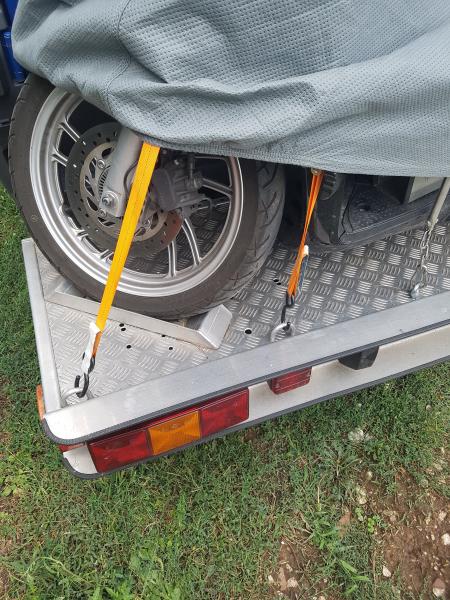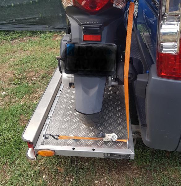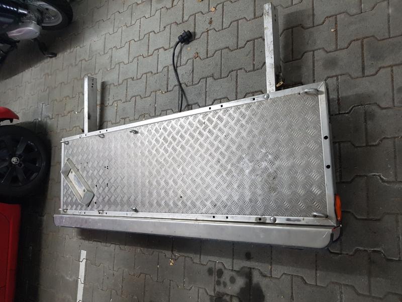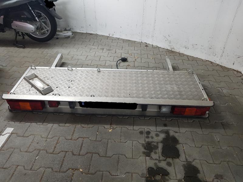 | Beschreibung: | Der Träger besteht aus einer Aluminium-Plattform, 56cm Tiefe, mit 6 verschweißten Alu-Zurrösen, montierter Beleuchtungsschiene, den tragenden Profilen aus Aluminium und einem Alu-Vorderradhalteschuh Die Plattform ist von einer Person innerhalb einer Minute abnehmbar, ohne Werkzeug, ohne sich unter das Fahrzeug legen zu müssen. Es brauchen nur 2 Schnellverschlüsse gelöst zu werden.