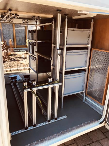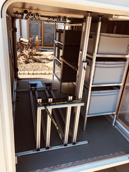 Der Fahrradhalter hat verschiedene Haltesysteme 1x mit Spannriemen und es sind auch 2 aufnahmen für die Gabel dabei wenn das Vorderrad ausgebaut ist . Unser Auto ist ein C - Line 4.9 Modell 14/ passt aber auch in viele andere Modelle. Die Sachen sind alle noch eingebaut und können vor Ort besichtigt werden - Top Zustand !! Rechnung über 900 Euro für Regale und Fahrradhalter sind vorhanden . Abholung wäre optimal . PLZ 34431 direkt an der A44 Wir möchten eigentlich nur alles zusammen Verkaufen .FP 550 Euro |