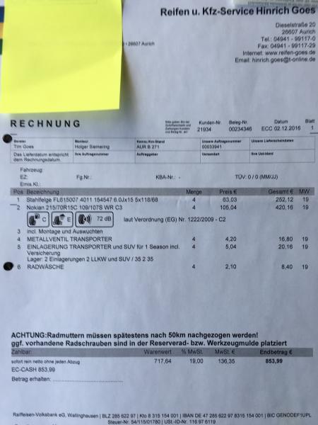 215/70R15C. Wegen Unstieg auf Ganzjahresreifen. Keine Macken, Laufruhig, Metallventile, fast neuwertig!