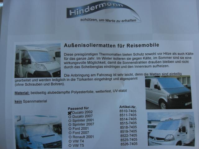 | Beschreibung: | Gebrauchte, einmal benutzte Außenisoliermatte -ohne Schäden- für Fiat Ducato von Hindermann wegen Fahrzeugwechsel abzugeben.