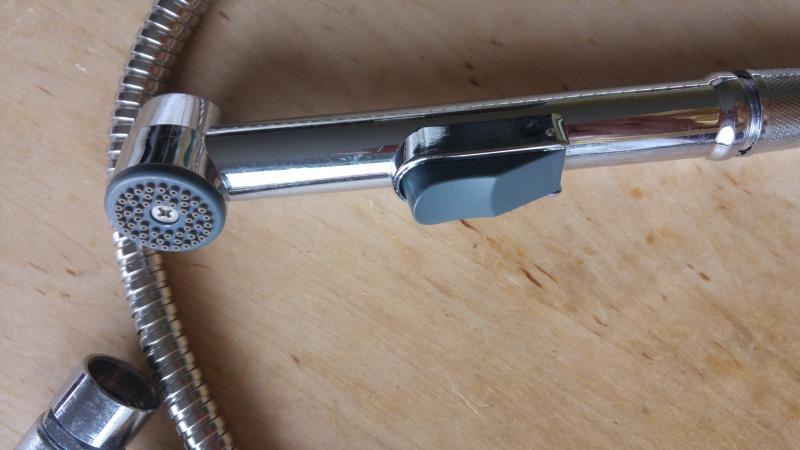 Gut erhaltene Hand-Dusche (ca. 1,60 m) mit Anschluss für Außen- und Innennutzung. Abnehmbarer Brausenschlauch.