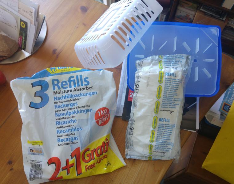 Dagegen sollten Sie etwas tun. Mit einem speziellen chem. Granulat wird die Feuchtigkeit gesammelt und in eine kleine Abtropfwanne geleitet. Die Flüssigkeit und die Granulatbeutel können Sie ohne Probleme entsorgen.