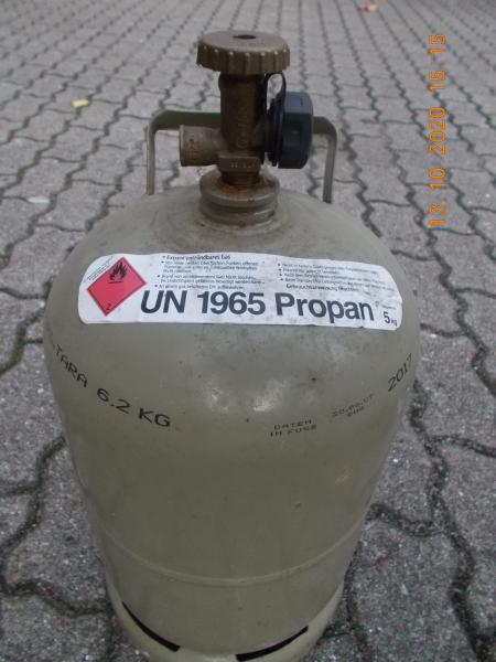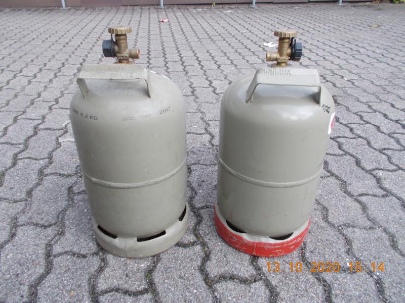 Verkaufe 2 graue Tauschgasflaschen a 5 kg Füllung. Leer. Neupreis 2019 bei Hornbach leer 29.- €.