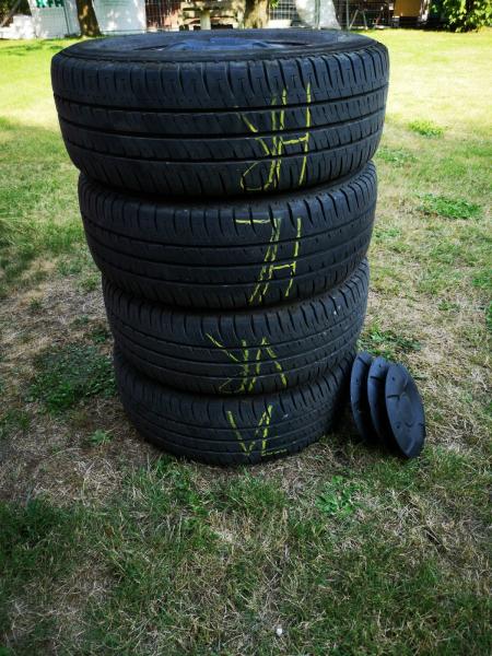 4 Sommerreifen Michelin Agilis 235/65 R16C, LI 115/113 R, DOT 0418, Die Profiltiefe beträgt ca. 8-9 mm, auf Stahlfelgen 6,5x16, LK 5x160 zB Ford Transit ab 2014 Plus ein "Neureifen" ohne Felge (Reserverad)
