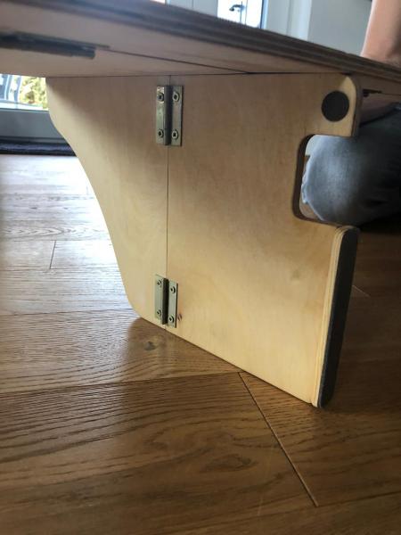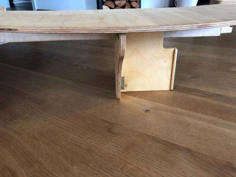 Es ist ein aus Holz gefertigter, äußerst hochwertiger Klapptisch für die Sitzgruppe, sodass man, wenn man die Sitzgruppe zum Sofa umbaut trotzdem noch einen kleinen Tisch hat.