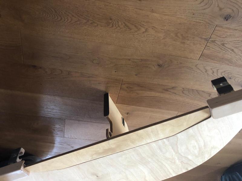 Wird einfach in die Tischreling eingeführt und kann dann ZUSAMMEN mit dem normalen Tisch dort heruntergeklappt verweilen. Möchte man den Tisch aufbauen, einfach den großen Esstisch abnehmen, Klapptisch hochklappen und fertig. |