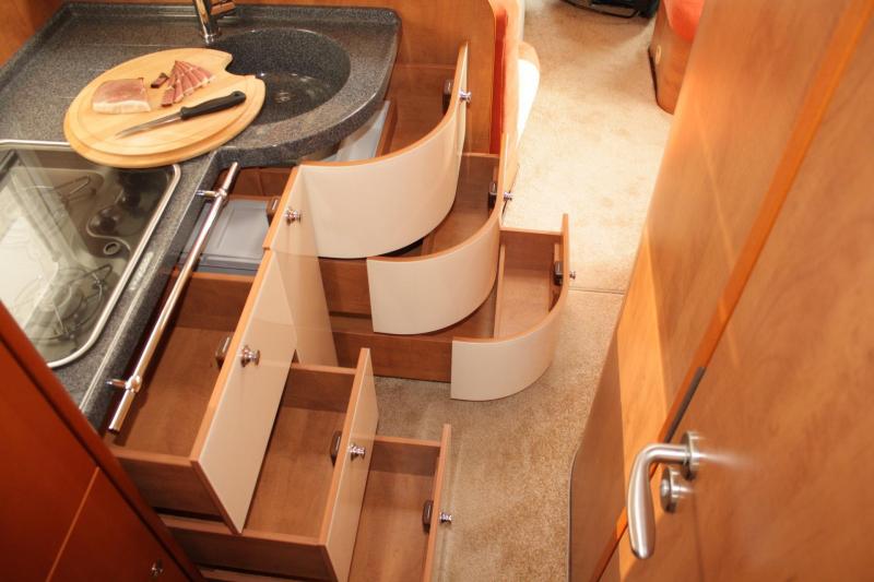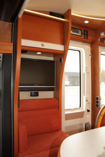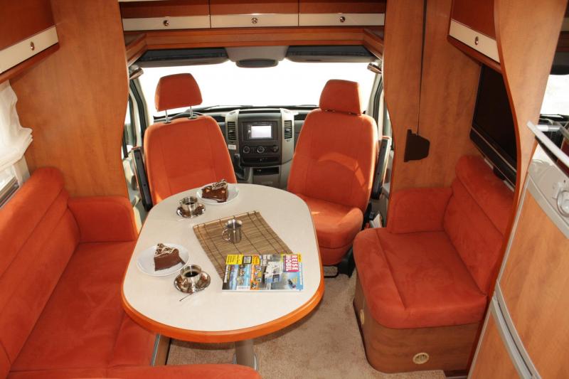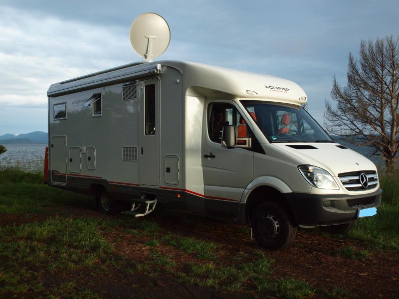 Fahrgestell Mercedes Sprinter 519 CDI; 190 PS 6 Zyl CDI; Auflastung auf 5,3 to; Vollautomatik-Getriebe Wandler Klimaanlage Tempmatic; Wärmeschutzverglasung; Reserverad incl. Halter Tempomat; Ganzjahresreifen; Anhängersteckdose 13 Pol.; 100 Liter Kraftstofftank Kraftstofffilter mit Wasserabscheider; Wärmeisolierung Fahrerhaus; MB Motor -Kühlwasserstandheizung ; Verstellbares Lenkrad; Anfahrassistent; Elektrik, Gas Solaranlage 2 x 100 Watt; Rückfahrkamera Waeco; AES Tower-Kühlschrank 155Liter mit Backofen; Fernsehanschlusspaket; SOG Toiletten- Entlüftung- System; Truma Combi Umluftheizung; Truma 230V E-Heizung; Gasfernanzeige; mit EisEx; Sonstiges Außenmarkise 4500mm; Dach 2 x Midi Heki 500x700; Heckgarage- Boden Aluriffelblech; Zusätzliche Stauraumtür rechts 600 x 600; Verstärkte Rahmenverlängerung; Dachreling aus GFK; Vorhänge; Teppichboden; 260 Liter Frischwasser; 190 Liter Abwasser; Rolladenabtrennung zur Fahrerkabine; Fliegengitter an Eingangstür; Möbelbau Massivholz; selbstragender Aufbau; Fiamma Fahrradhalter in Heckgarage;