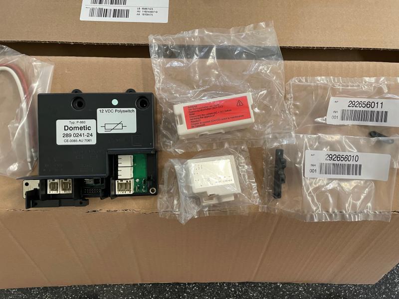 | Beschreibung: | Dometic AES Absorberkühlschrank Ersatzteile (Neu) für Typ RMD 8505 8555 RMDT 8505 8535 und weitere Typen (Orgilal verpakt, nur für Fotos geöffnet) - 1 St. Anschluss Block kompl. Steuermodul Platine (Ersatzteilnummer 289078811) - 1 St. Bedienelektronik, Bedienteil Anzeige Dometic kompl. f. Linksanschlag RMD85x5, AES4 (Ersatzteilnummer 289064400 ersetzt 289050800) - 1 St. Verbindungskabel Bedienfeld Elektronik L=2030 mm (Ersatzteilnummer 289023710) |