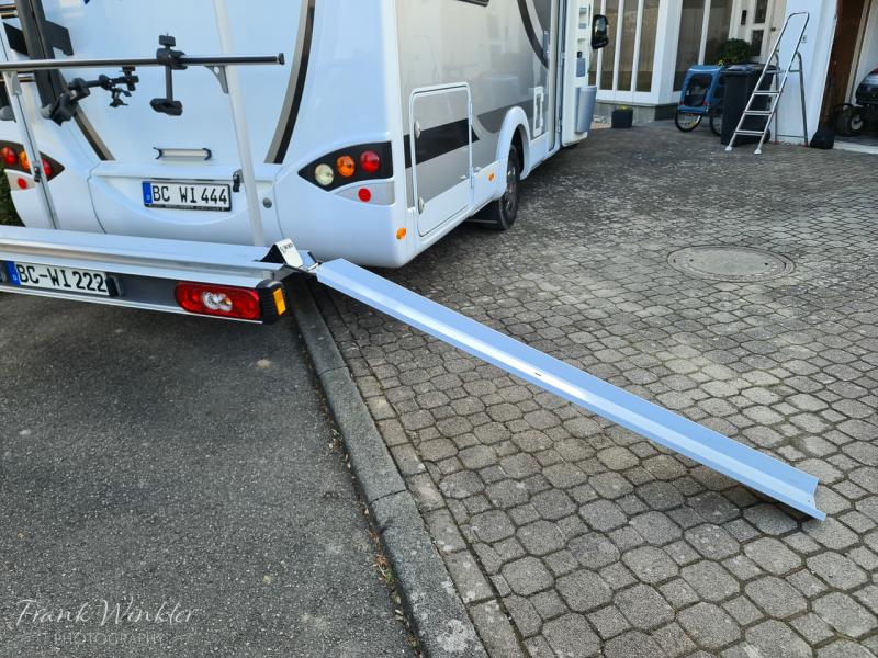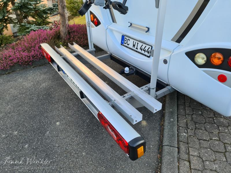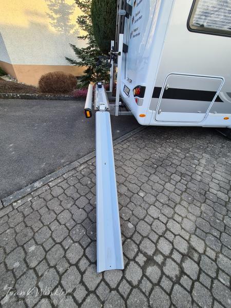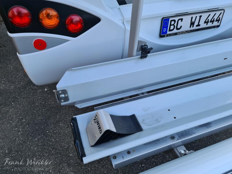 | Beschreibung: | Verkaufe einen kaum benutzten Heckträger für Wohnmobile von Sawiko (Typ Ligero). Der Träger eignet sich zum Transport von Motorrädern, Rollern oder E-Bikes. Die Traglast beträgt 130kg. Alle Schienen, für Roller, Auffahrrampe, Schienen für 2 E-Bikes, sind im Preis enthalten (siehe Fotos). Gegenwärtig sind Schienen für E-Bikes montiert. Auch Mountainbikes mit Breitreifen stehen sicher in den Schienen.