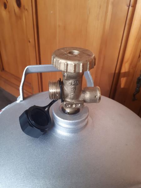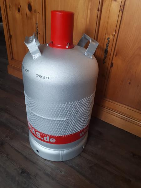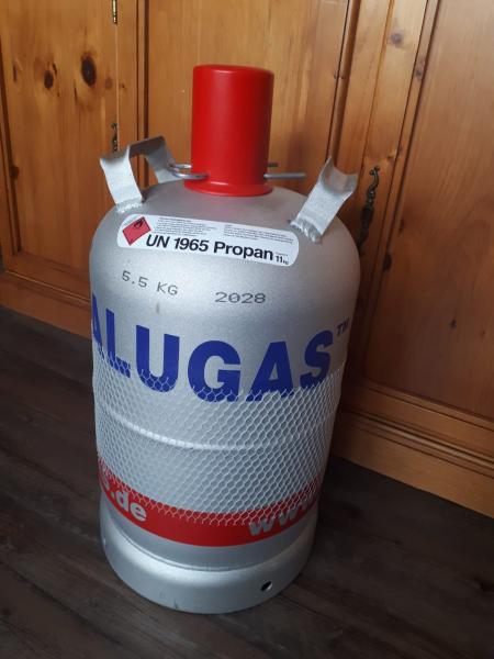 Angeboten wird eine unbenutzte, leere Alu-Gasflasche (Fehlkauf, passt nicht in den Zeltanhänger)