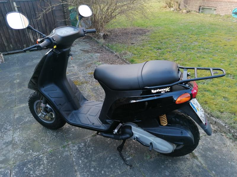 | Beschreibung: | Ich verkaufe hier einen 125er Piaggio-Roller, Modell Typhoon, mit Originallaufleistung von 2.643 Km! Erstzulassung 27.05.1999, ideal als "Beiboot" fürs Wohnmobil! 108 Kg leicht, Größe wie beim 50er-Roller, passt in die meisten Heckgaragen! Zweitakter mit Getrenntschmierung, frisch gewartet, Tüv heute (25.05.2022) neu gemacht. Jetzt bekommt er noch eine neue Batterie, damit er auch sofort uneingeschränkt einsatzfähig ist. Der Roller hat einen E-Starter und einen Kickstarter, Fabre ist schwarz. Ich habe den Roller letzten Sommer aus erster Hand von einem älteren Paar, welches auch ihr Wohnmobil verkauft hat, weil sie seit Jahren gesundheitsbedingt nicht mehr reisen konnten, gekauft. Fotos kann ich gern per Mail schicken, bitte einfach eine Mailadresse schicken. Der Roller hat an der Verkleidung ein paar Gebrauchsspuren vom Transport, man sieht, wo die Spanngurte, mit denen er früher am Wohnmobil befestigt worden ist, verliefen, dort gibt es entsprechende Schrammen. Es gibt noch ein Topcase dazu, dann kann man, wenn man den Roller auf einer Tour mal im nächsten Ort abstellt, einen Helm in das Staufach unter der Sitzbank und einen zweiten Helm dann in das abschließbare Topcase legen und hat die Hände beim Stadtbummel frei. Die Einkäufe können dann in diesen Staumöglichkeiten verstaut werden, wenn man für die Rückfahrt die Helme wieder herausnimmt. Insgesamt in der Zustand der Laufleistung entsprechend Top, Reifen sind top (noch vom Vorbesitzer neu gekommen), fährt sich sehr einfach und zügig. Mit meinen 130 Kg Lebendgewicht kam der Roller letzten Sommer auf der Landstraße auf Schlag auf 110 Km/h.